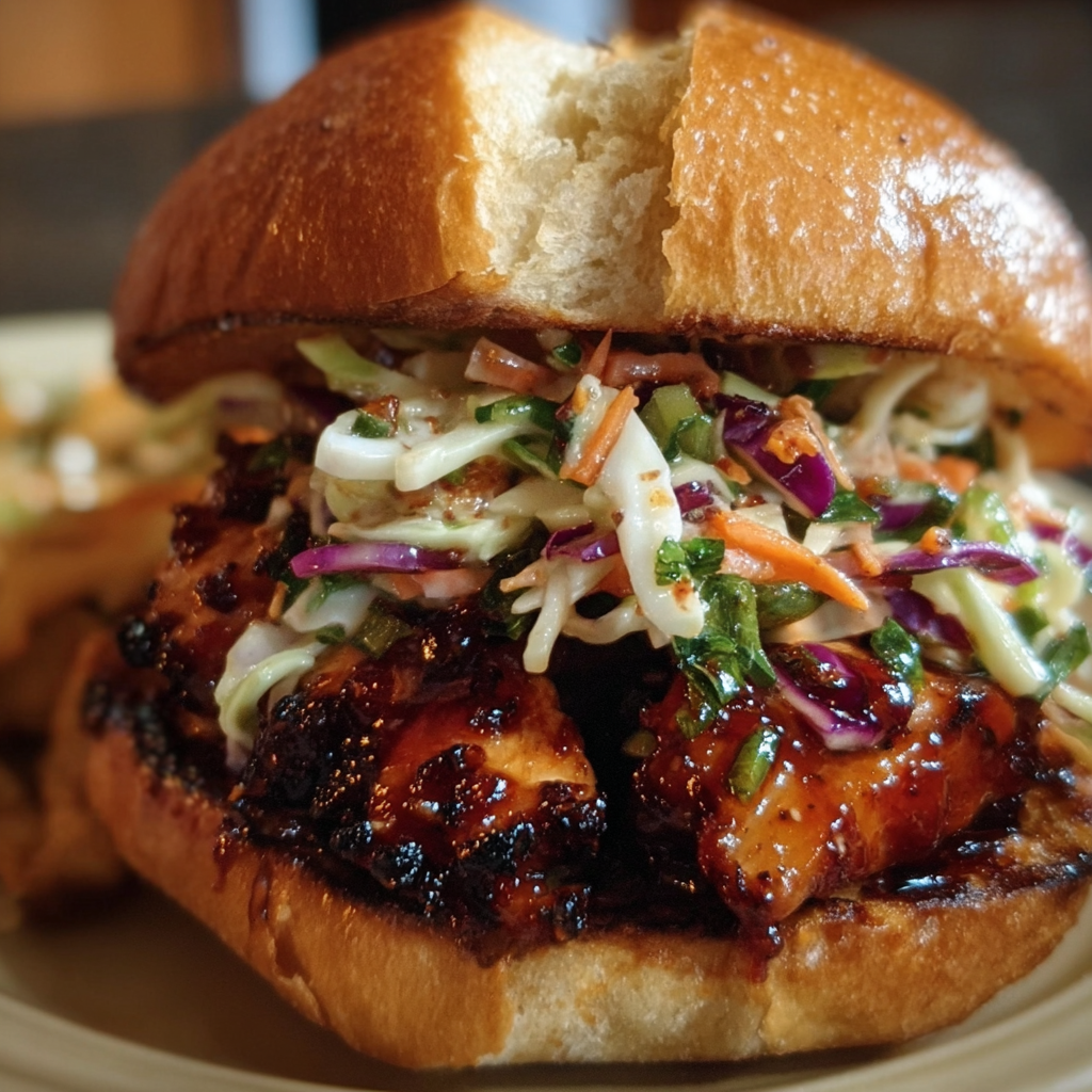 Spicy Korean BBQ Chicken Sandwich with Tangy Slaw
