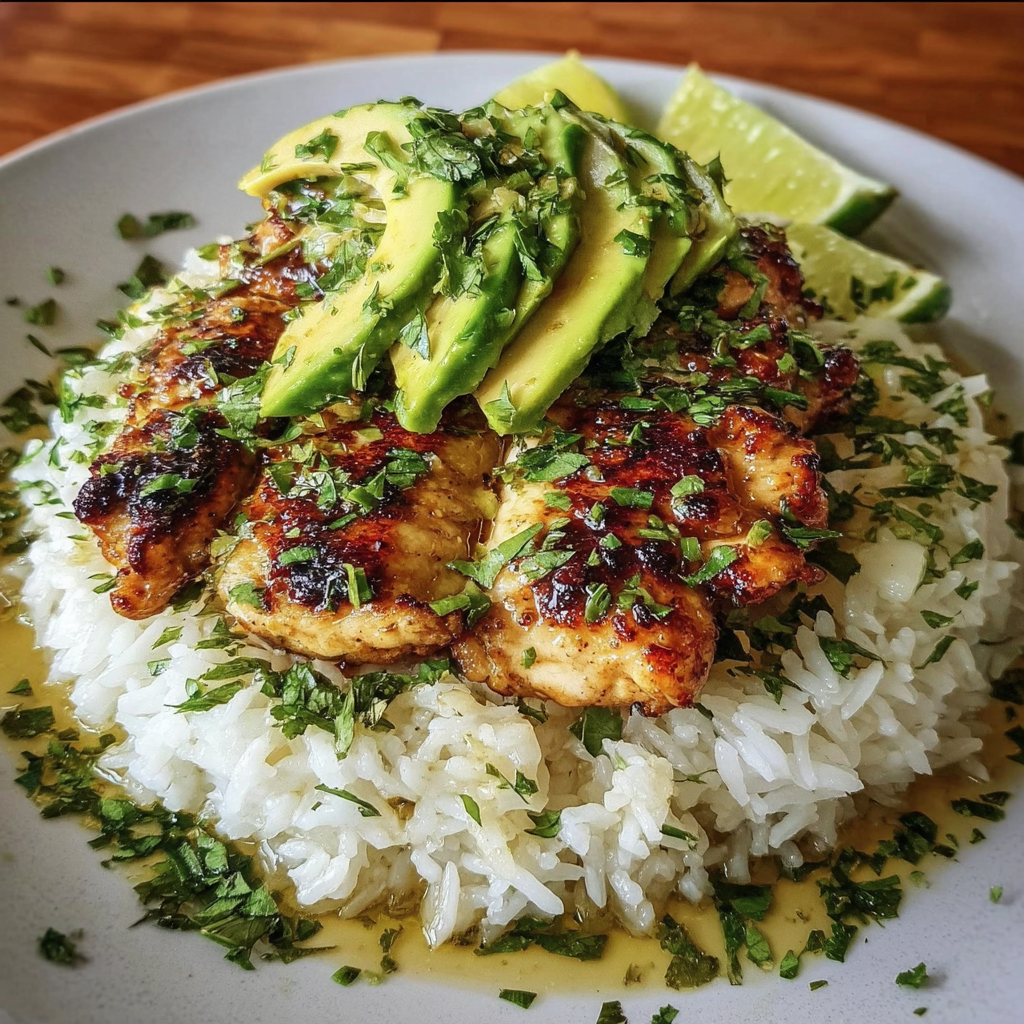 Zesty Cilantro Lime Chicken with Avocado and Jasmine Rice
