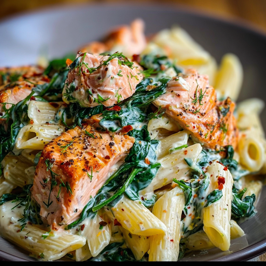 Quick Salmon & Spinach Pasta – Creamy, Healthy & Flavor-Packed