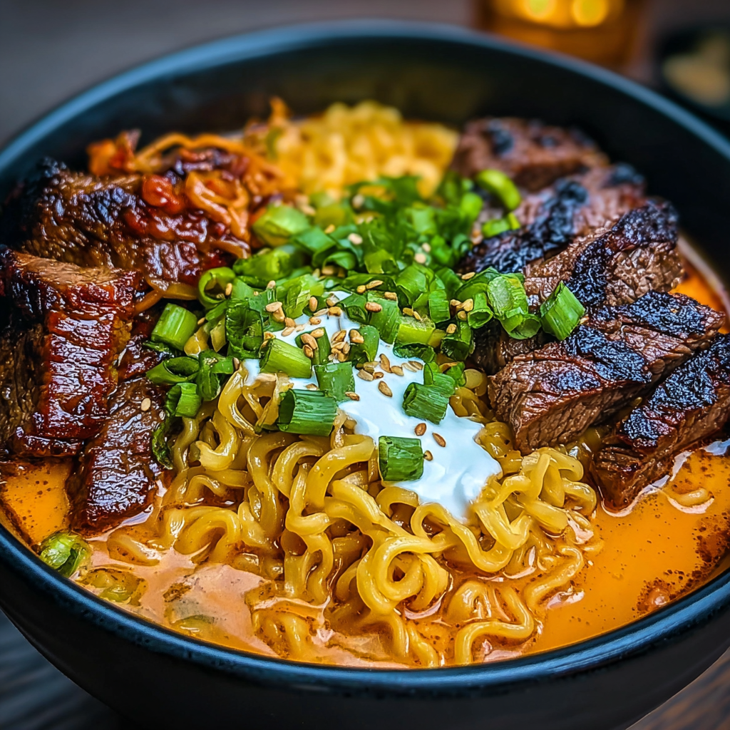 Spicy Korean Ramen with Grilled Beef – Bold and Creamy