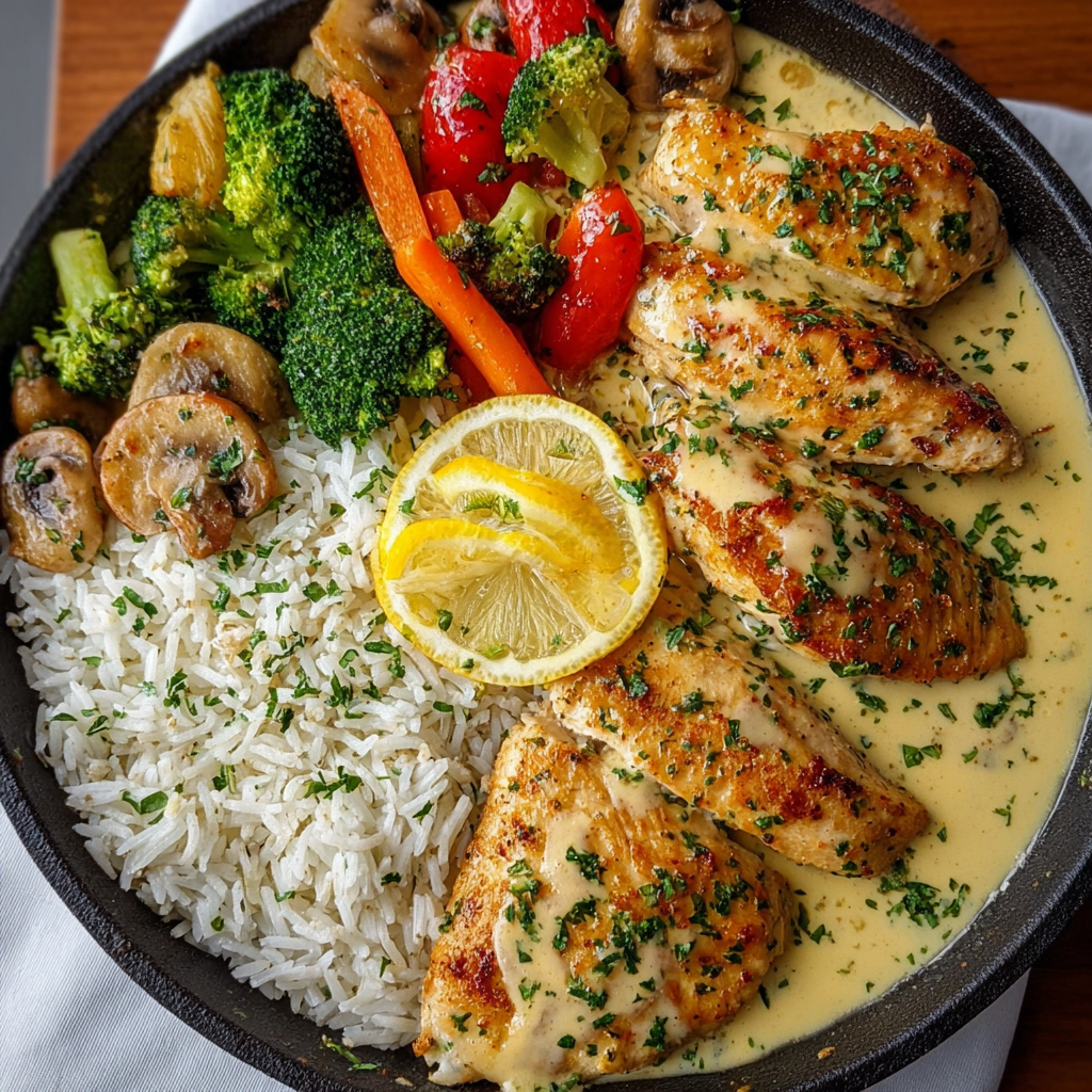 Creamy Lemon Butter Chicken with Rice & Veggies – Zesty, Comforting & Easy