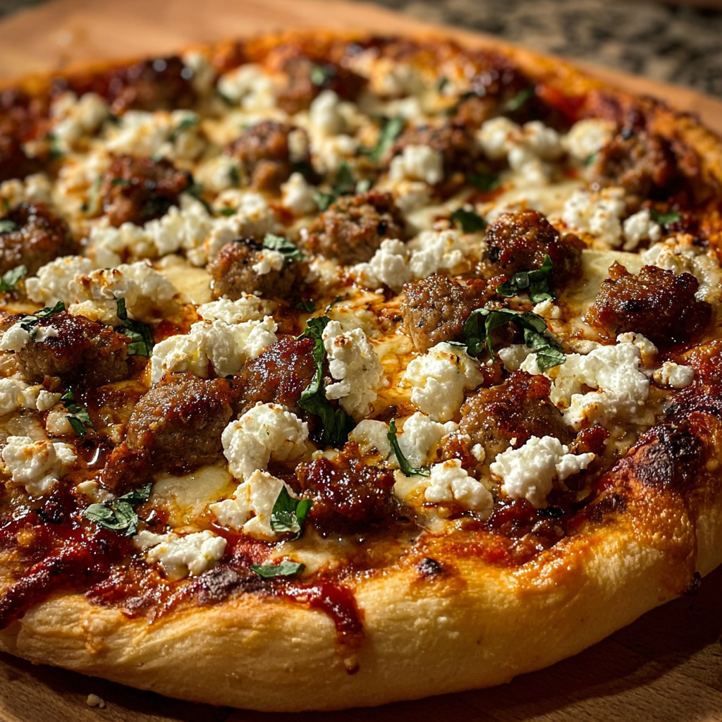 Sweet & Spicy Sausage Feta Honey Pizza – Bold, Flavor-Packed & Crispy