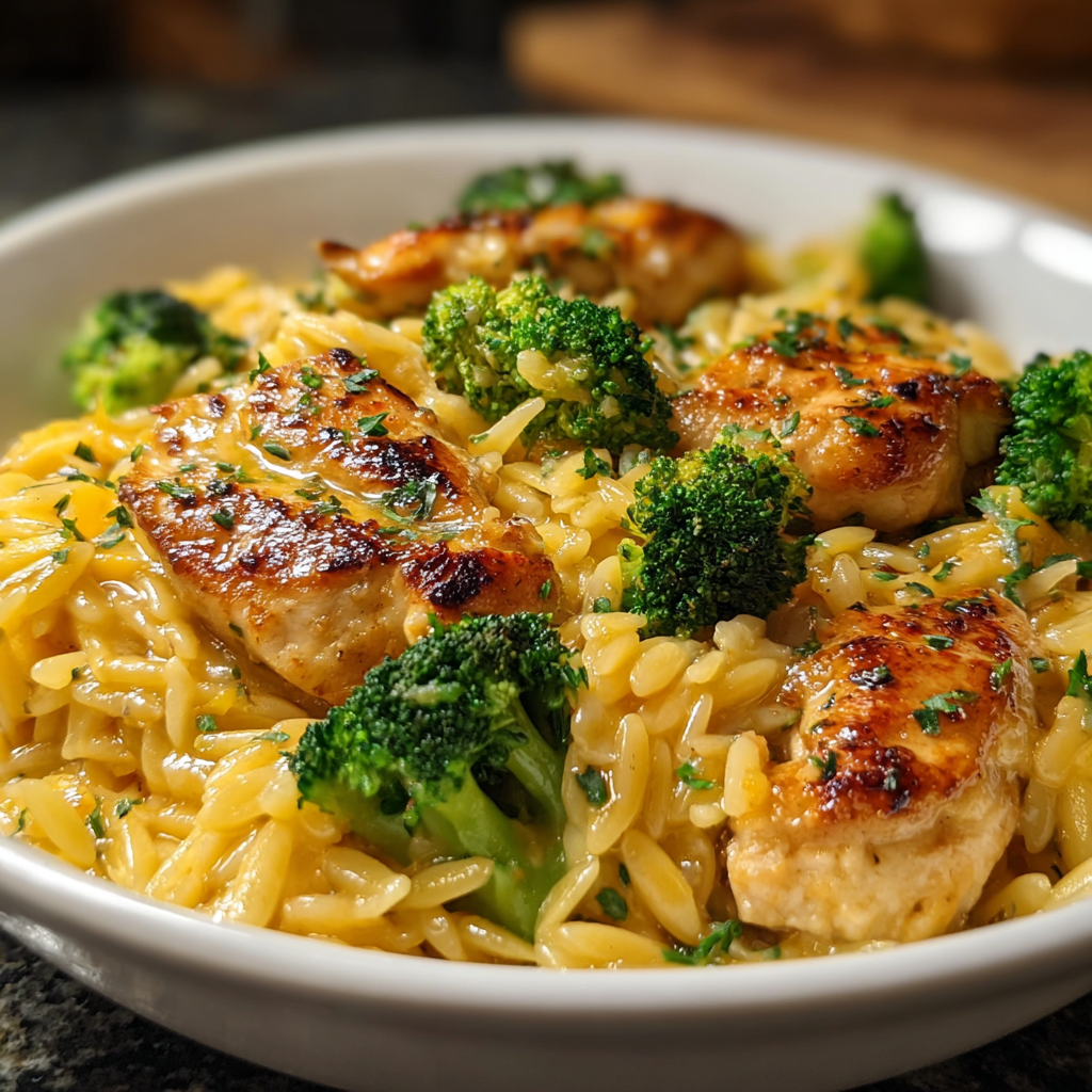 Chicken Broccoli Orzo with Cheddar – Quick, Cheesy & Healthy Dinner