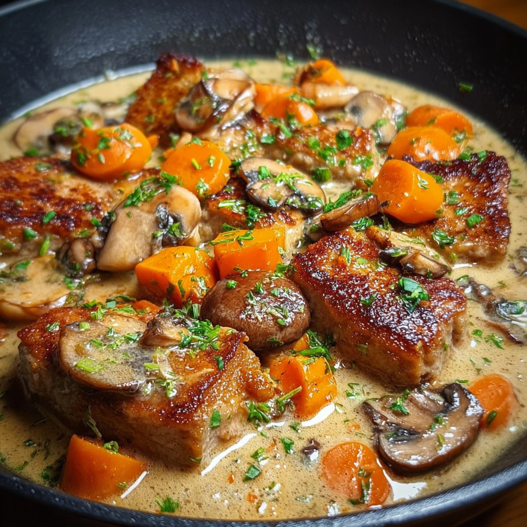 Creamy Pork Pan-Fry with Mushrooms and Carrots – Easy Comfort Dinner