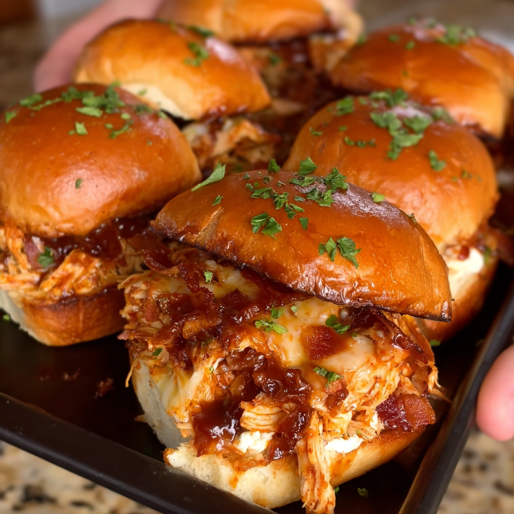BBQ Chicken & Bacon Baked Sliders – Cheesy, Smoky & Crowd-Pleasing