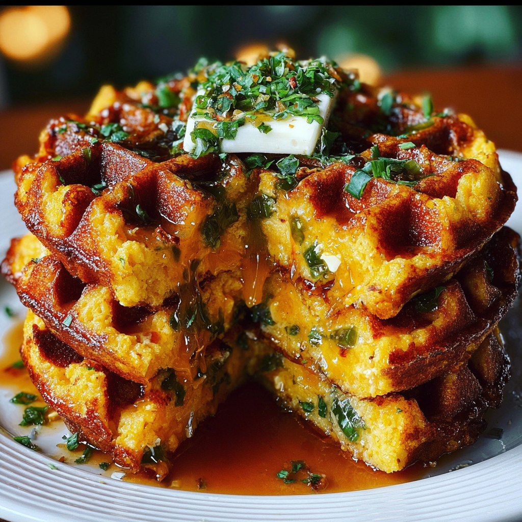 Spicy Cheddar Jalapeño Cornbread Waffles — Savory & Crispy Breakfast Recipe