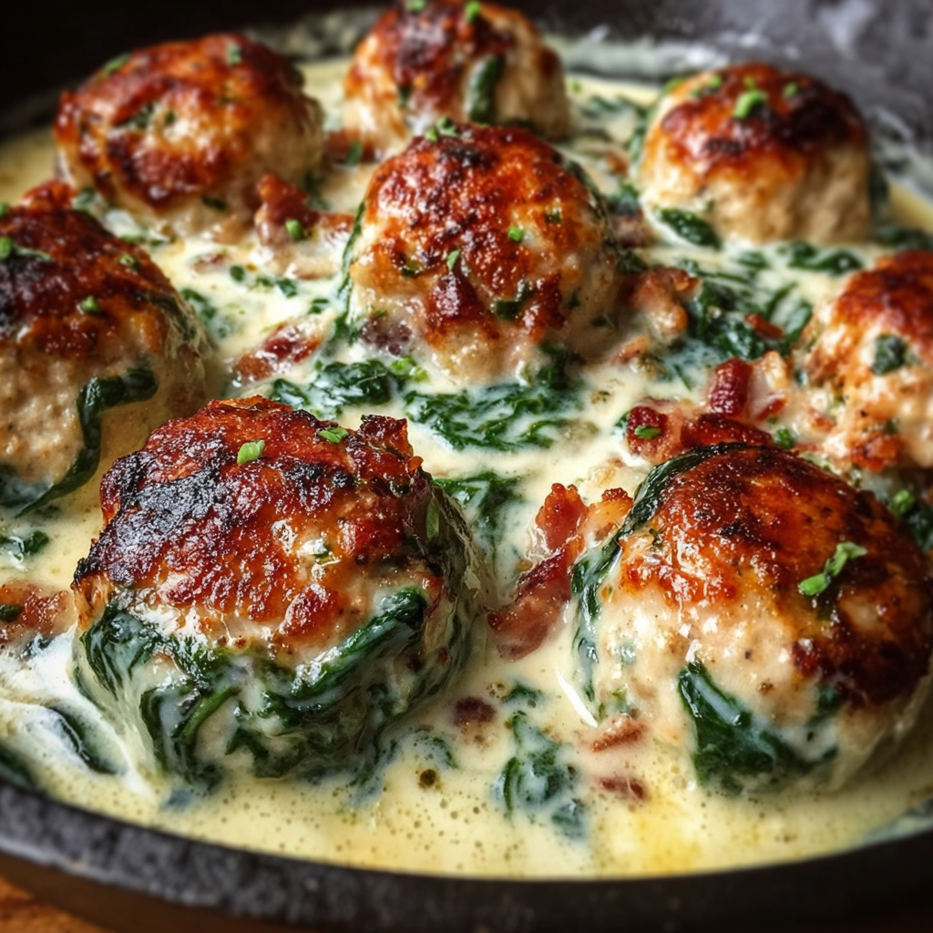 Baked Chicken Ricotta Meatballs with Spinach Alfredo Sauce – Creamy & Flavorful Dinner