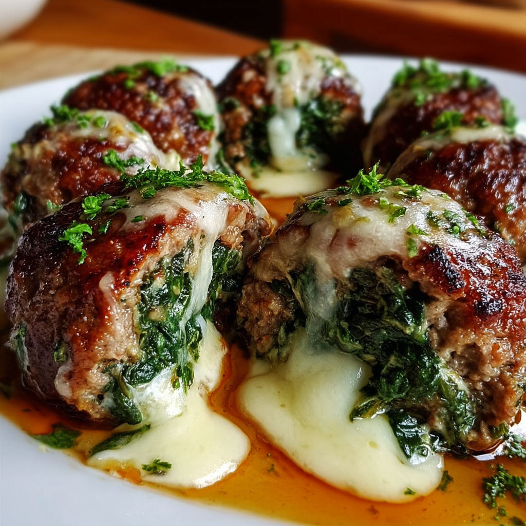 Spinach Garlic Meatballs Stuffed with Mozzarella – Juicy, Cheesy & Flavorful