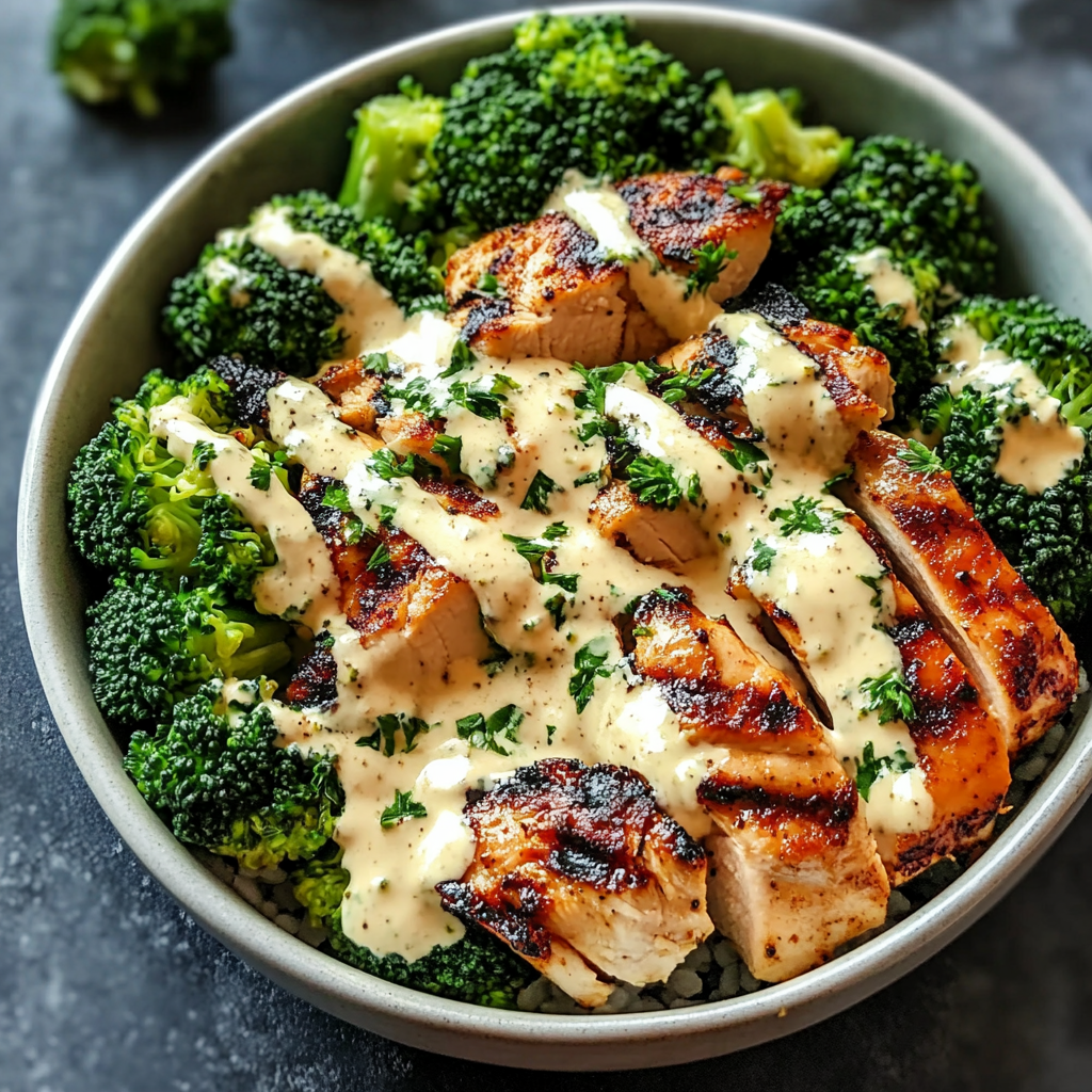 Grilled Chicken & Broccoli Bowls with Creamy Garlic Sauce – Healthy & Flavor-Packed Meal