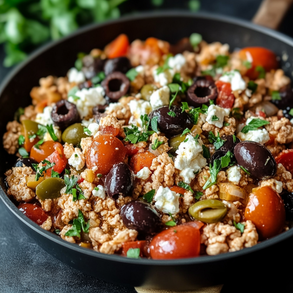 Mediterranean Keto Ground Chicken Skillet with Olives & Feta – Low-Carb & Flavor-Packed