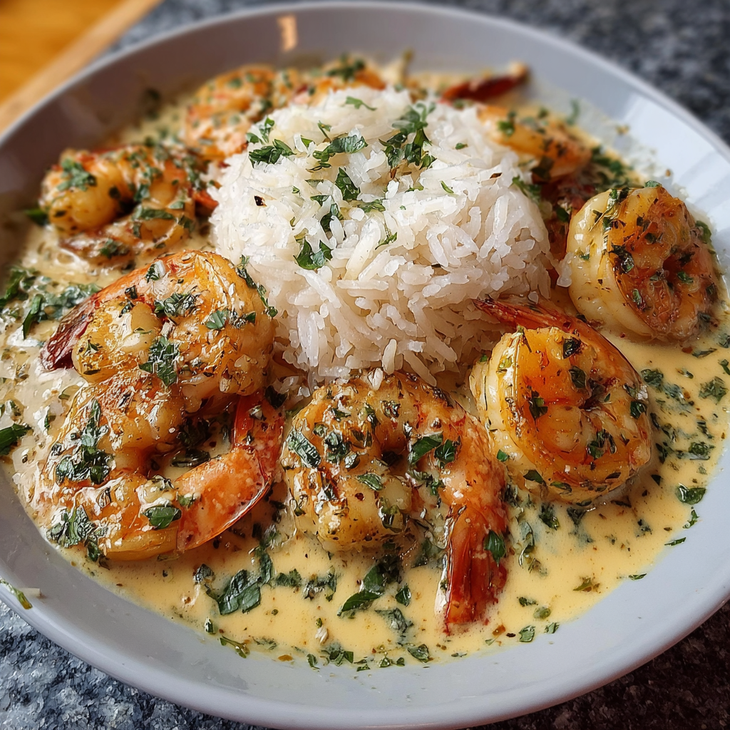 Step-By-Step Creamy Garlic Shrimp with Rice